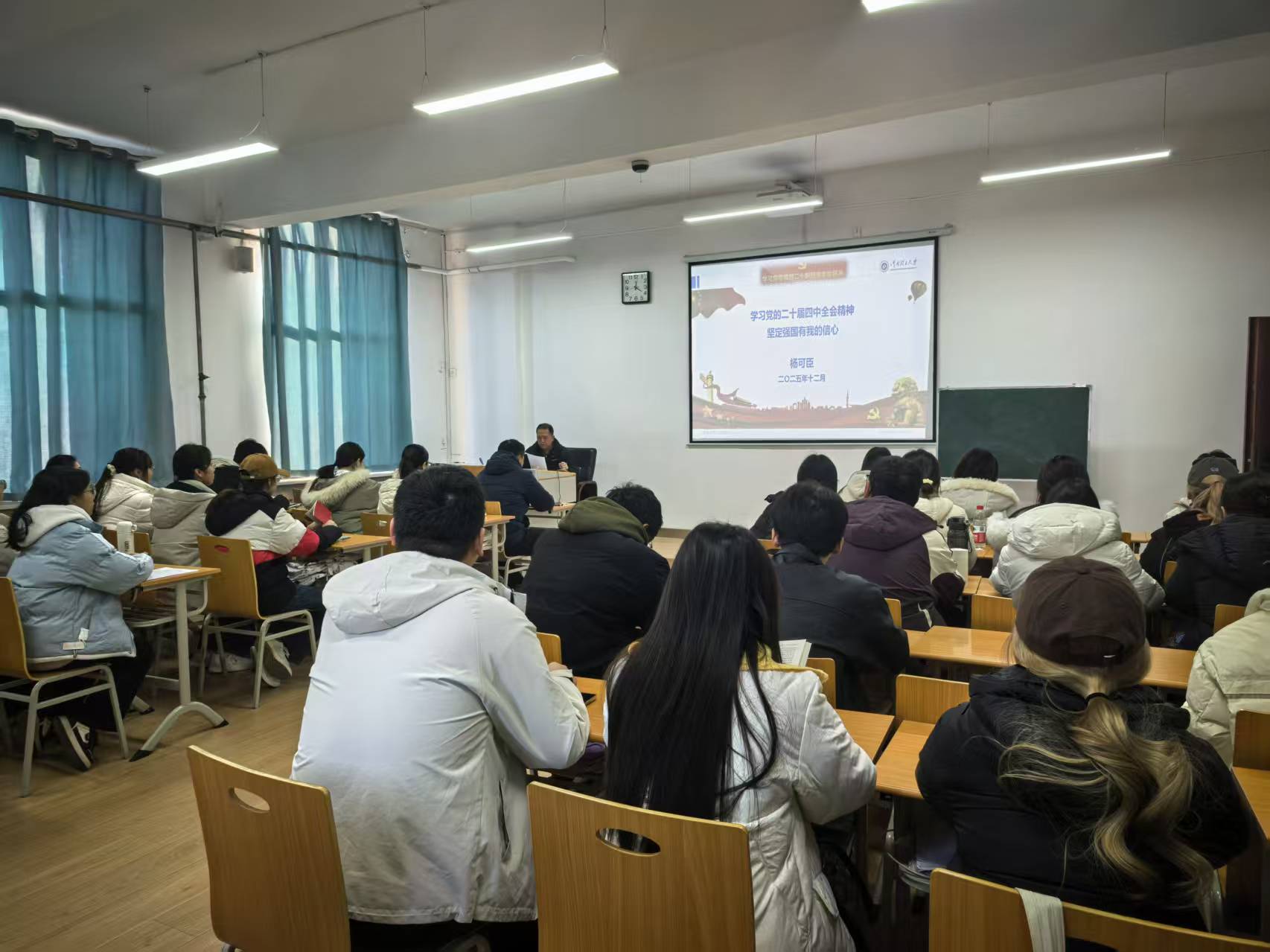 为深入学习贯彻党的二十届四中全会精神,引领广大师生切实把思想和行动统一到全会决策部署上来,12月2日下午,文法学院党委书记杨可臣作党的二十届四中全会精神专题宣讲报告。学院预备党员、入党积极分子代表参加学习。