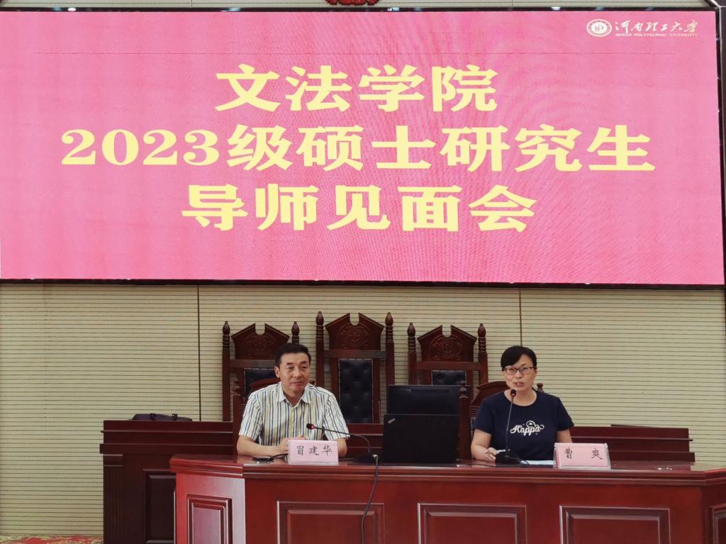 9月15日下午,文法学院2023级硕士研究生导师见面会在学院智慧模拟法庭顺利召开,文法学院院长冒建华、副院长曹爽,全体研究生导师及64名研究生新生参加了本次见面会。本次会议由文法学院副院长曹爽主持。