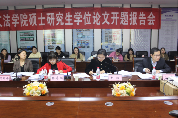 本次申请开题答辩的共有46名硕士研究生,分为两组,会期三天,总计八场。第一组特邀校外专家郑州大学国际教育学院吕兆格教授主持开题;第二组特邀校外专家吉林大学文学院韩文淑教授主持开题。