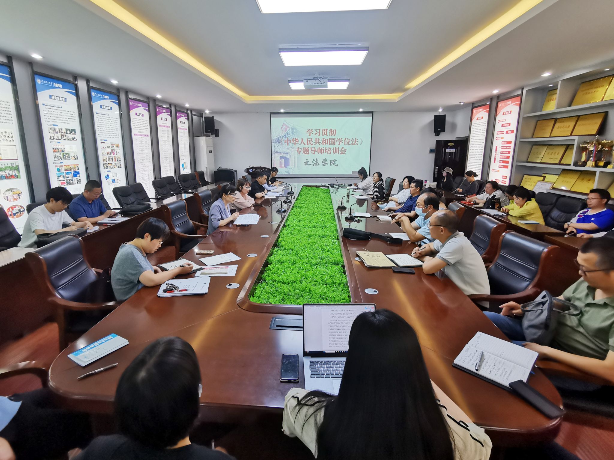 5月14日下午,文法学院在院楼121会议室召开学习贯彻《中华人民共和国学位法》专题导师培训会,全体研究生导师参加会议,会议由副院长曹爽主持。
