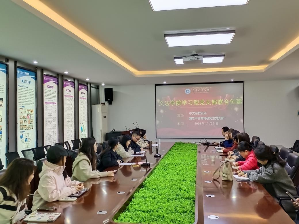 为深入学习贯彻党的二十届三中全会和全国教育大会精神,扎实推进学习型党支部建设,营造重视学习、崇尚学习、坚持学习的浓厚氛围,11月5日下午,文法学院中文系党支部与国际中文教育研究生党支部在121会议室开展学习型党支部联合创建活动。本次活动由中文系支部书记闫克主持,文法学院学术副院长张海媚、中文系主任刘延福等二十余位师生一同参加。