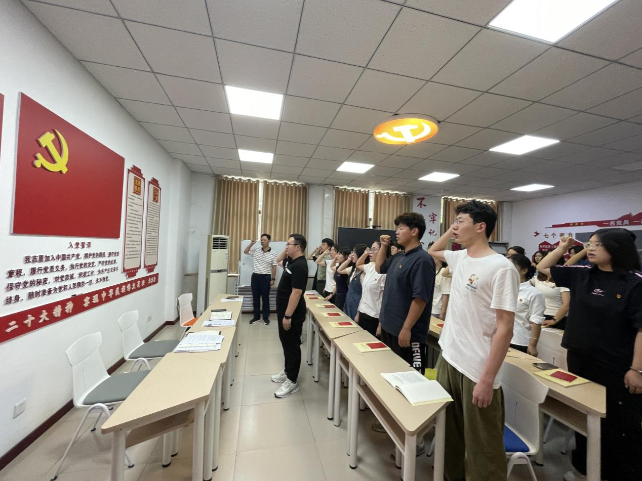 仪式开始前,学院党委向预备发展党员发放了《中国共产党章程》和《习近平文化思想学习纲要》。仪式结束后,全体党员共同观看了《党课开讲啦|入党誓词的演变》《这就是中国》教育片。