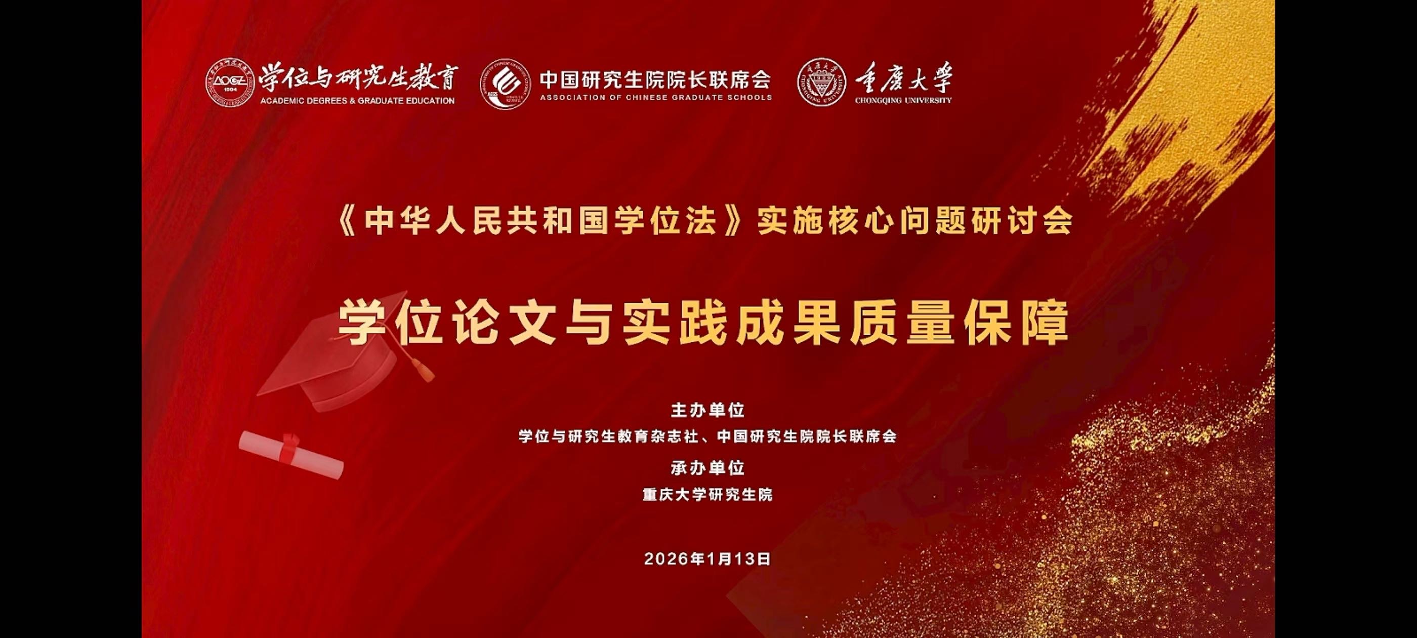 专题一: 《中华人民共和国学位法》实施核心问题系列研讨会,聚焦“学位论文与实践成果质量保障”,于2026年1月13日(星期二)13:30—16:30直播。多位高校专家就专业学位论文质量提升、实践成果申请学位、学位质量保障等议题进行了深入分享。
