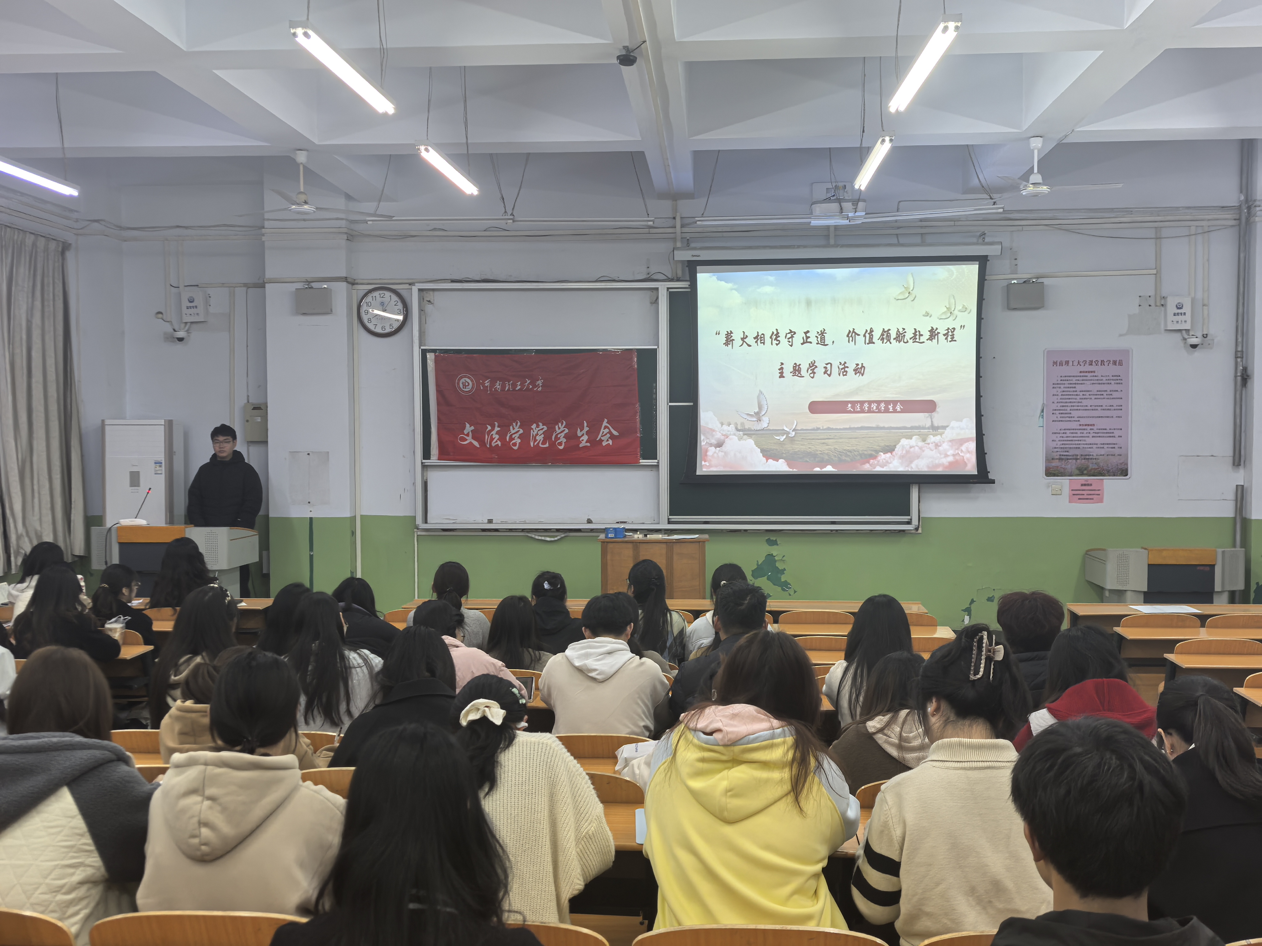 为引导青年学子深刻领悟社会主义核心价值观的精髓要义,9月28日,河南理工大学文法学院学生会在北校区二号教学楼2305教室开展“薪火相传守正道,价值领航赴新程”主题学习活动。