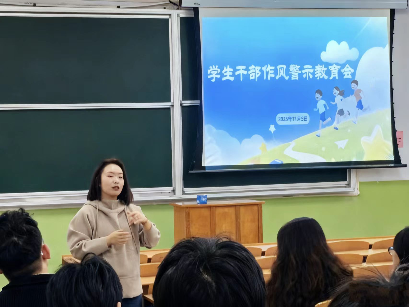 为强化学生干部服务意识、责任意识与大局意识,增强学生干部责任感,11月5日,文法学院在二号教学楼2102教室召开学生干部作风警示教育会,会议由文法学院学生会主席团成员刘雅欣主持,文法学院团委书记闫芮主讲,学生会全体成员参加。