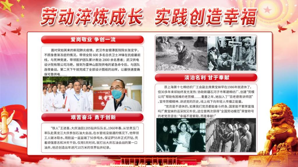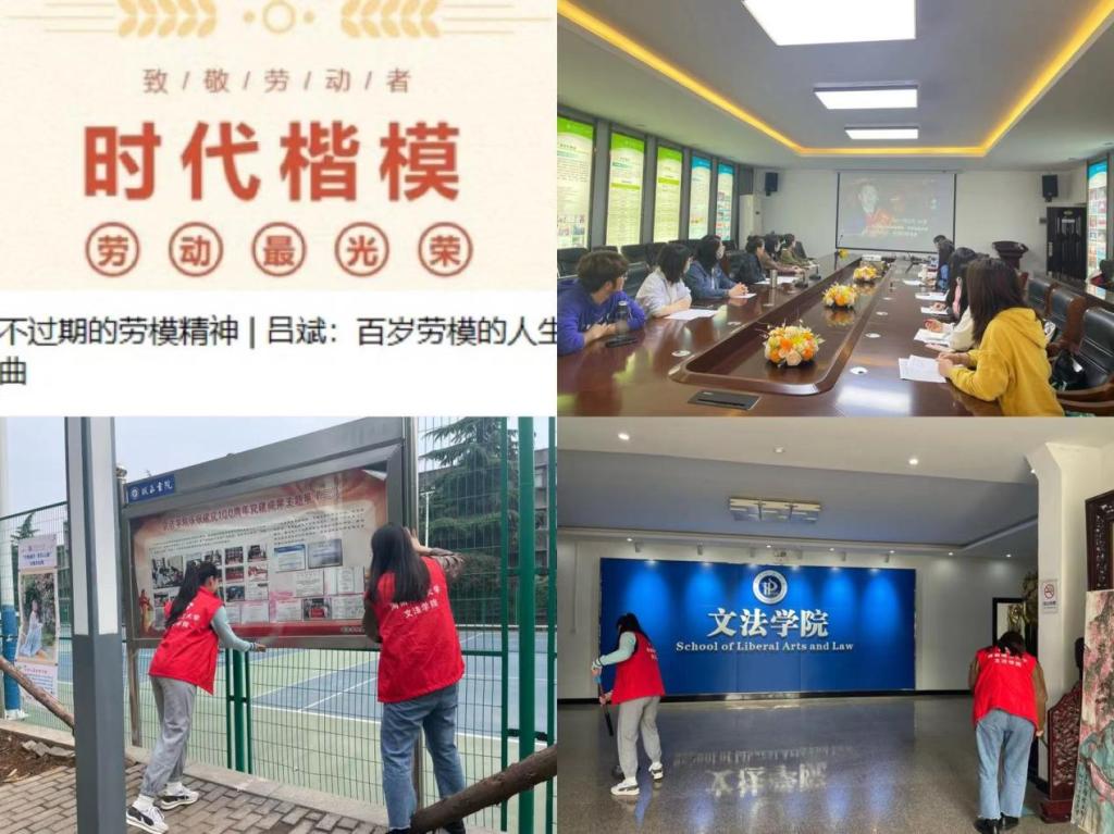 文法学院通过组织师生观看“影响几代人的劳模”特辑视频以及展出“劳动淬炼成长,实践创造幸福”的劳动教育主题宣传展板,使得广大师生牢固树立劳动最光荣、劳动最崇高、劳动最伟大的观念,进一步焕发劳动热情、释放创造潜能,通过劳动创造更加美好的生活。同时文法学院研究生党支部积极组织在校学生进行校园展板维护以及专业教室清扫志愿服务活动。通过这次志愿活动,展现了党支部成员积极的工作态度,弘扬了同学们勤恳劳动精神,更加明确“尊重劳动、崇尚劳动、热爱劳动”永远都是我们纪念“五一”国际劳动节的基本内涵和永恒主题。