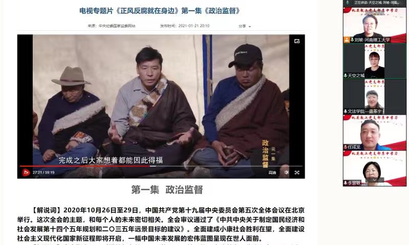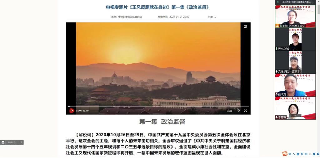为进一步加强党风廉政建设,切实提高教师廉洁自律意识,8月10日,文法学院各党支部组织观看了由中央纪委国家监委宣传部、中央广播电视总台联合制作电视专题片《正风反腐就在身边》第一集—《政治监督》。