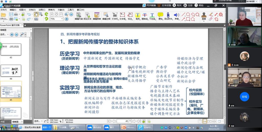 为促进广告专业学子的学业发展,指导考研学生做好复习备考规划,11月15日上午,文法学院2020级广告专业举行线上考研指导会,广告专业教授、硕士研究生导师郜书锴、2020级广告专业班主任刘坡担任主讲,辅导员孙琪和2020级广告专业全体学生参会。