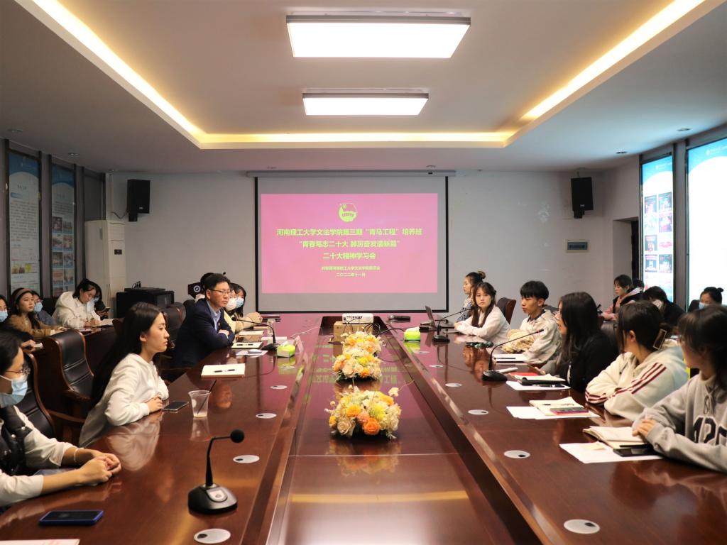 学思践悟二十大,砥砺奋进新征程。11月20日晚,学院在121会议室组织2020级学生党员和第三期青马班学员学习党的二十大精神。院党委副书记郑伟参加会议并宣讲党的二十大精神。