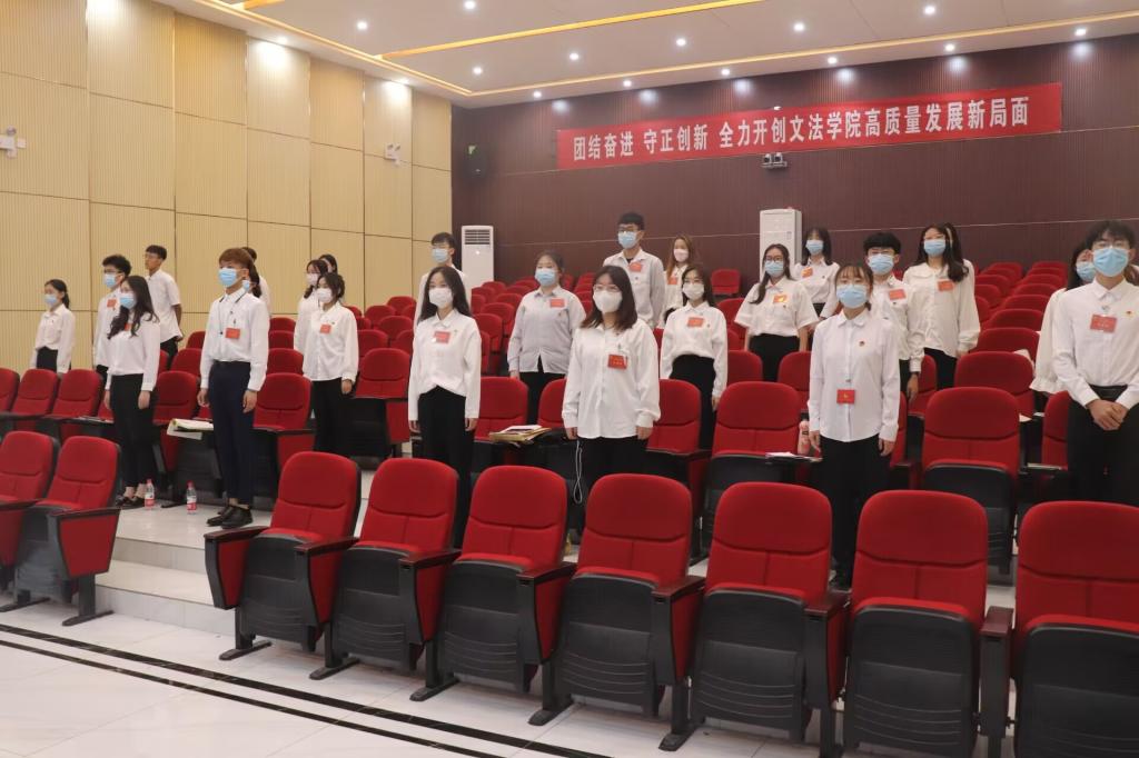 会议伊始,院团委委员李靖冉致开幕词,肯定了我院学生会“全心全意为同学服务”的理念,向学院党政干部、学生会成员致以敬意并传达了相关文件精神。随后,她进行工作总结报告,从思想建设、组织建设和学风建设等方面介绍了学生会机构设置、考核制度等,对学生会工作所取得的成绩给予肯定,同时也指出成员创新能力欠佳、追求卓越意识不强等不足。对此,她敦促全体学生代表候选人要坚定理想信念,加强自我管理,为建设和谐学院贡献自己的青春力量。接着,工作人员宣读文法学院学生会章程修改草案和选举办法草案,学生代表候选人举手投票通过监票人、记票人名单。随后,大会审议并通过《文法学院第七次学生代表大会选举办法》和总监票人、监票人名单,宣布了总计票人、计票人名单。大会严格遵循“公开、公平、公正”的选举原则,采取无记名投票方式,选出岳佳雯、刘伊琳、赵蒴等14名学生代表。伴随着庄严的校歌,大会圆满落幕。随后,在模拟法庭召开了文法学院第七次学生代表大会会议,讨论并选举出文法学院第十二届学生会主席团及部长人选。