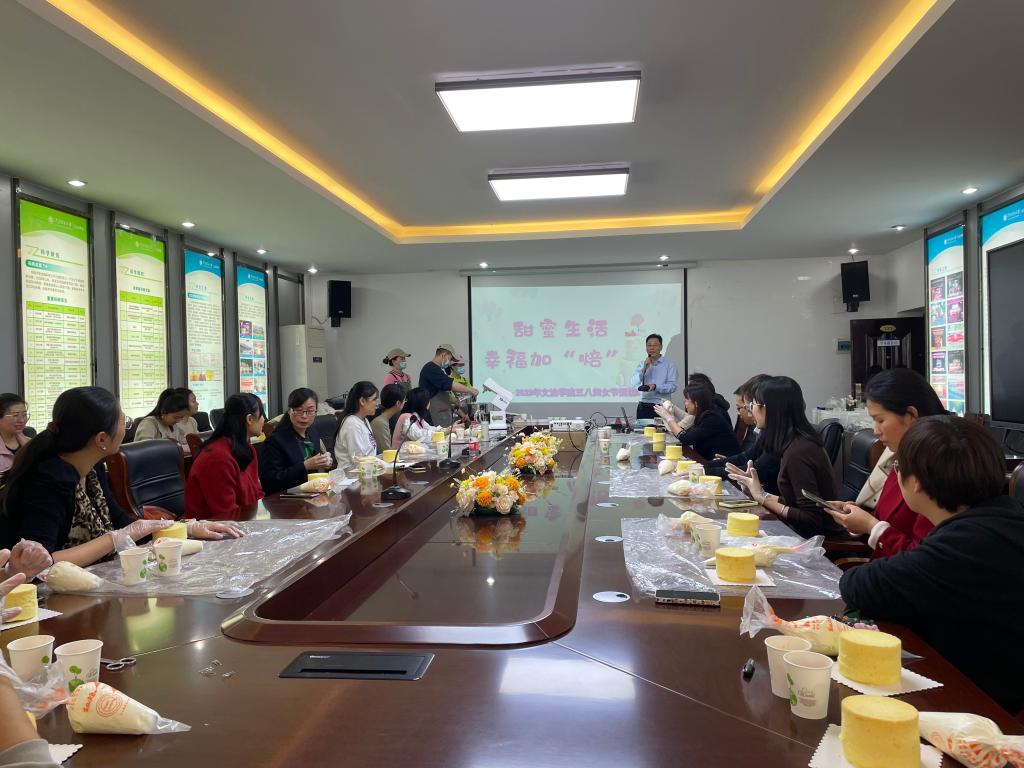 3月7日,学院组织女教职工在121会议室举行“甜蜜生活 幸福加‘焙’”蛋糕DIY活动。学院党委副书记郑伟首先代表学院向女教工表示节日的祝福。随后,大家在面点师的指导下切胚子、抹奶油、定造型、摆水果,制作精美蛋糕并拍照留念,处处洋溢着欢乐喜悦之情。