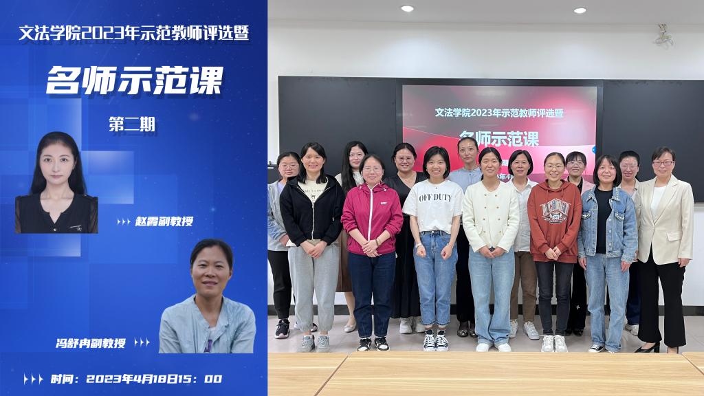 为发挥示范教师的示范引领作用,搭建交流和学习平台,调动广大教师的教学积极性、提高教育教学水平,并为校级示范教师评选活动做准备,4月18日下午,我院在学院楼221多功能教室举行了2023年院级示范教师评选暨名师示范课活动,本次活动由副院长曹爽主持,赵霞、冯舒冉老师主讲,学院教学委员会、近三年新进青年教师参加,学院部分教师进行了观摩。