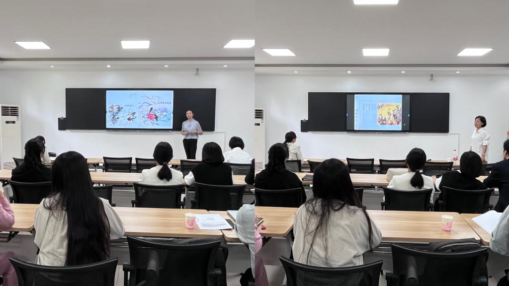 赵霞和冯舒冉老师分别以《三国演义——民间意识与官方思维》和《词的本义》为主题开展示范教学,以饱满的精神状态、清晰的讲课思路、沉着的应变能力和充满亲和力的独特讲课风格,展示出扎实的教学基本功和娴熟的教学技能。