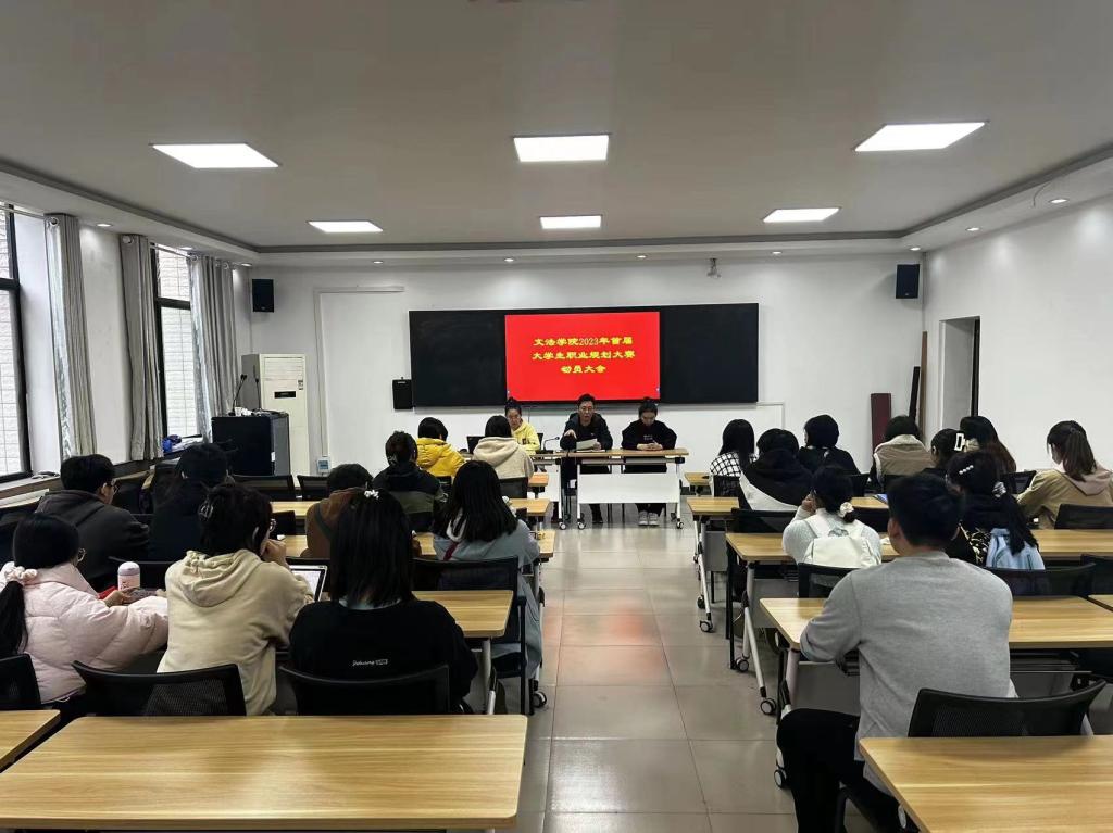 为进一步提升学生职业生涯规划能力,树立正确的成才观、就业观,11月21日下午,学院在院楼221教室召开2023年首届大学生职业规划大赛动员会,院党委副书记郑伟出席会议,辅导员闫芮、任美斌和三十余名学生参加会议。