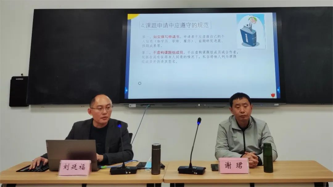 12月5日下午,我院在221教室举办科学道德与学风建设宣讲报告会,副院长谢珺和刘延福教授担任主讲,40余名研究生到场聆听。
