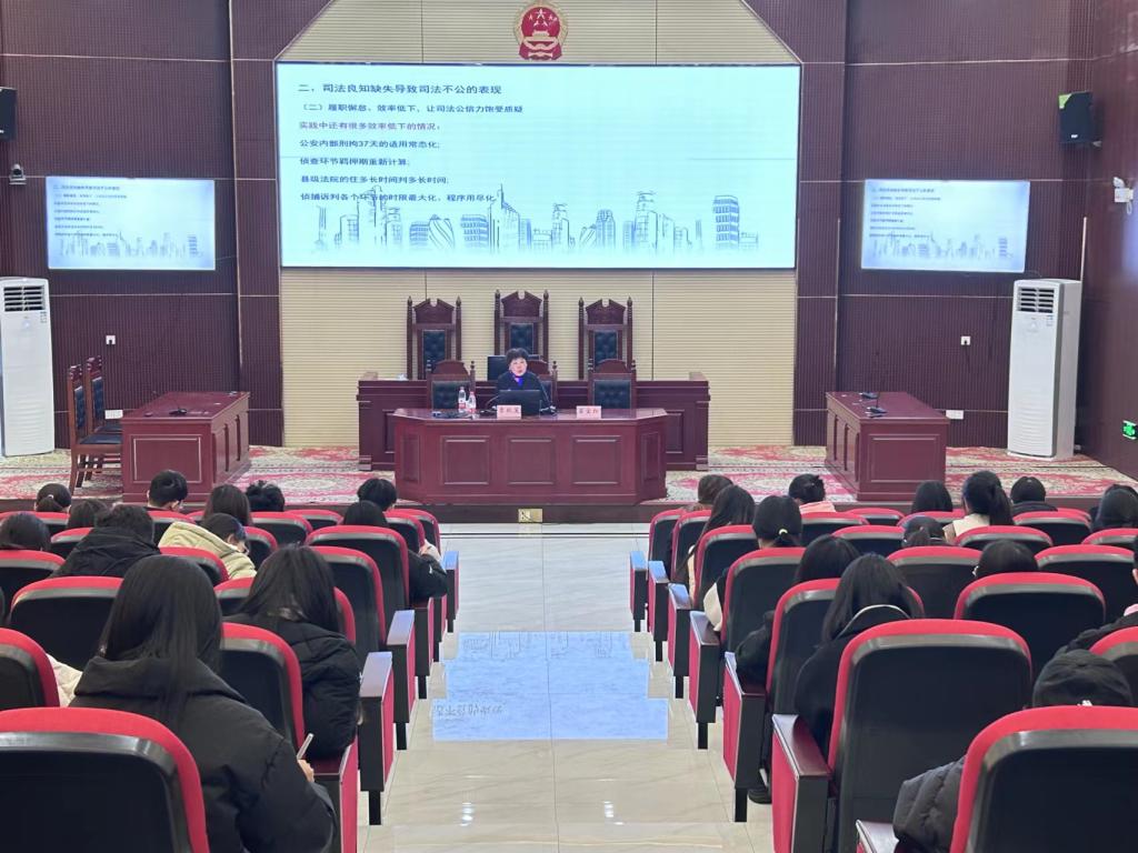 12月5日下午,文法学院院邀请焦作市人民检察院专职委员会委员李秋莲在模拟法庭作题为《维护公平正义比法律更重要的是良知》的专题讲座。学院法学系党支部书记翟宝红主持讲座,学院部分法学研究生和本科生到场聆听。