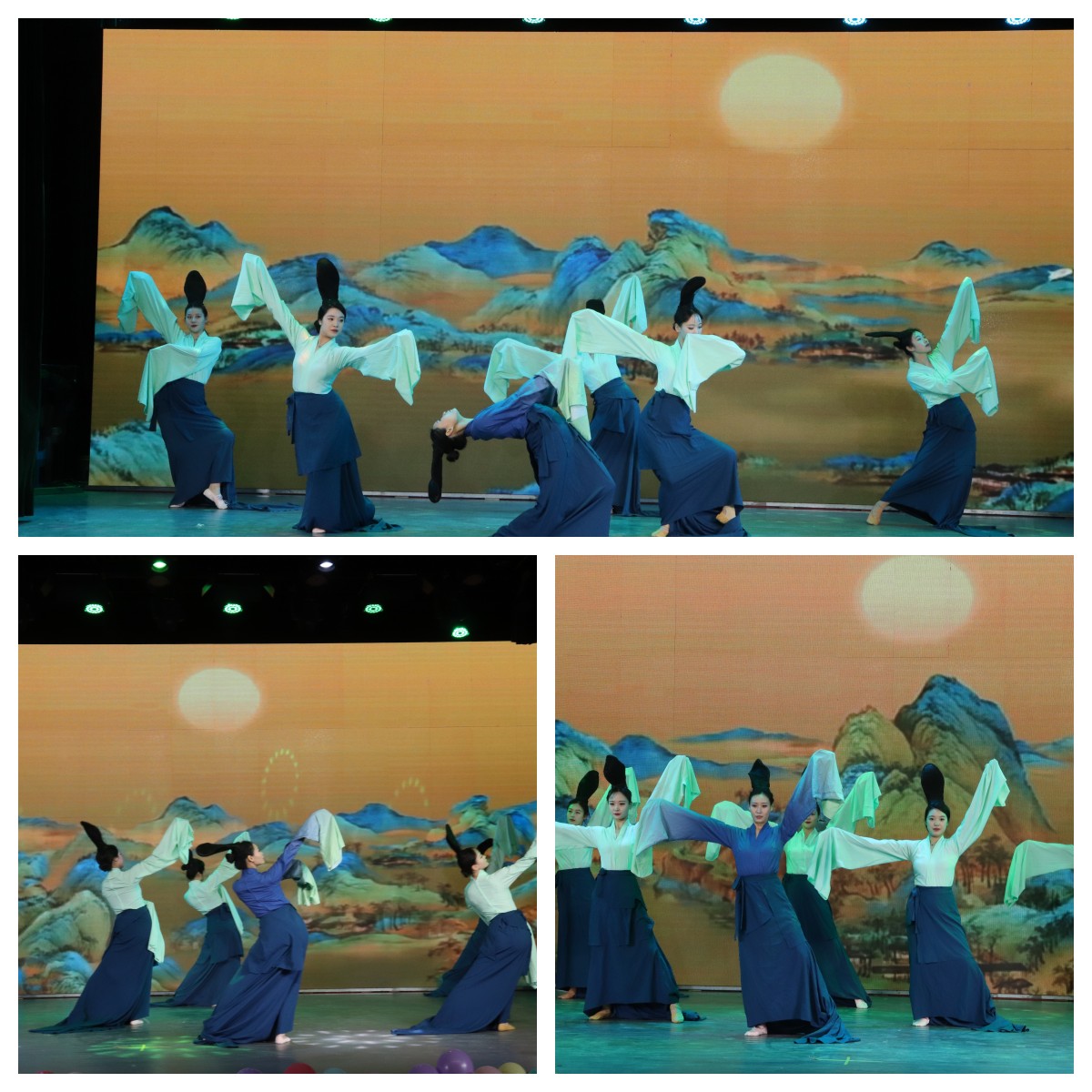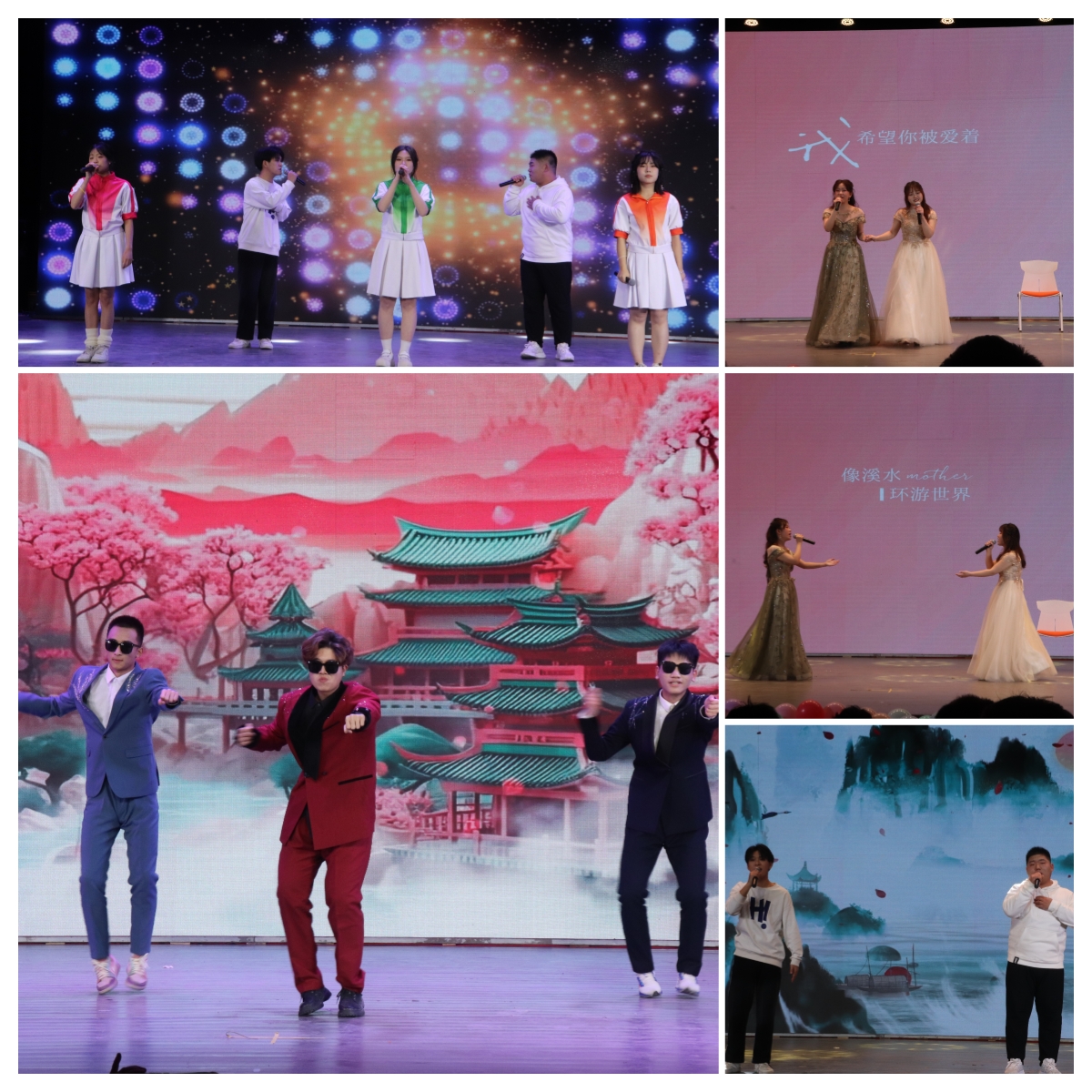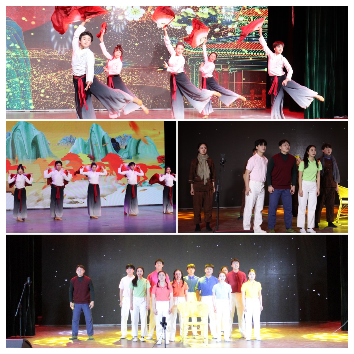 晚会还表演了精彩纷呈的节目。开场舞《wanna be》动感十足,瞬间点燃了大家的热情。歌曲《是妈妈是女儿》摇荡着每个人心中最真挚的感情。《云与海》在轻歌曼舞中倾诉着云海水天一色的奇妙。歌曲《新竹词》浅唱师恩,歌舞《留恋》舞尽美的珍贵。由河南省电视台资深主任播音员、河南省首届十佳广播电视台主持人、文法学院客座教授姬丽君带来的诗朗诵《面朝大海 春暖花开》让大家感受春天的气息、品味花开的喜悦。舞蹈《只此青绿》再现了北宋名画《千里江山图》的恢弘气势。舞蹈《万疆》勾勒出山河无恙的盛世景象。情景剧《树的坚守》赞扬了亲民爱民、艰苦奋斗、迎难而上、无私奉献的焦裕禄精神。太极舞蹈《一清一念舞太极》将中国传统太极文化和中国古典舞结合,刚柔相济、阴阳和谐。歌舞《律动青春》用活力四射的青春气息感染了在场的每一位观众。舞蹈《红马》琴声悠悠,舞步翩然。在古典音乐和江南小曲的低吟声中,走秀《东方韵江南美》让观众感受传统文化的魅力与神韵。教师合唱《相亲相爱》成功将晚会的气氛推向了高潮。
