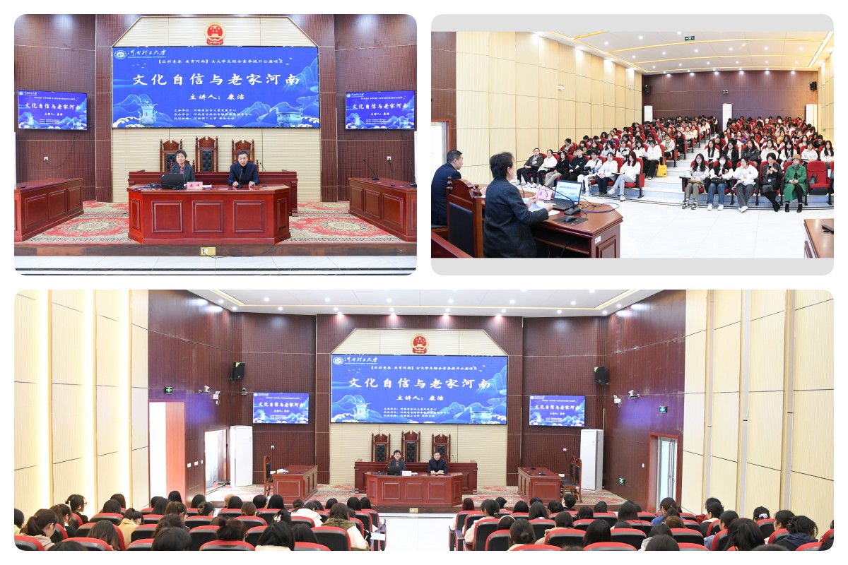 3月12日下午,我院特邀河南省文旅厅原一级巡视员、文化专家康洁于文法学院模拟法庭会议室作“文化自信与老家河南”专题讲座。此次讲座由学院院长冒建华主持,该院教职工、本科生到场聆听学习。