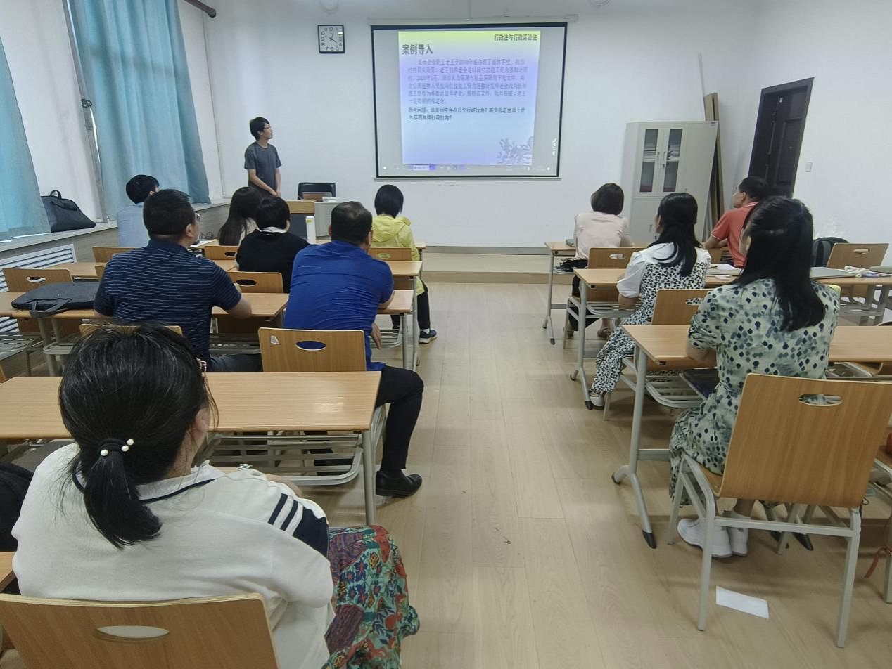 为进一步加强师资队伍建设,提高新入职教师的教育教学能力和专业素养,规范新入职教师本科课堂教学准入工作,5月28日下午,法学系在院313教室组织进行了2023年度新入职教师教学能力展示活动。活动由法学系主任王宏主持,李冬、郑依然、张澍、李晓庆四位新进教师参与展示。活动前,新教师们对试讲内容进行了精心设计和准备,在PPT制作和教学内容梳理方面都展现出了较高的教学素养。
