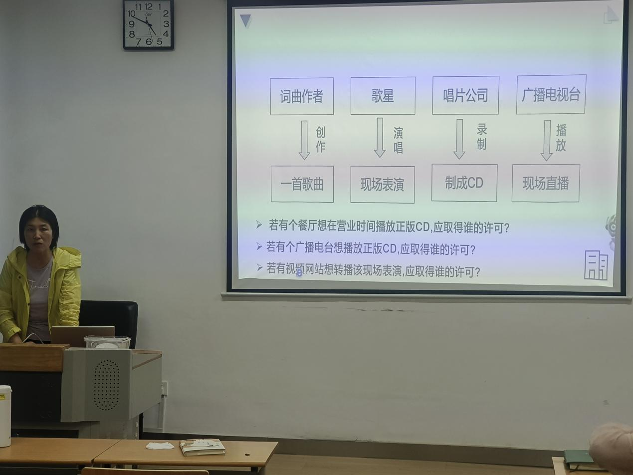 李晓庆老师主要介绍了邻接权产生的背景及原因,现实中有大量的非物质劳动成果由于不具备“独创性”而无法受到狭义著作权的保护,但又有一定的价值需要给予保护,邻接权就是扩大著作权法保护范围的结果。李老师对表演者权进行展开,通过案例讲解表演者权的主体以及表演者权与著作权人的关系。
