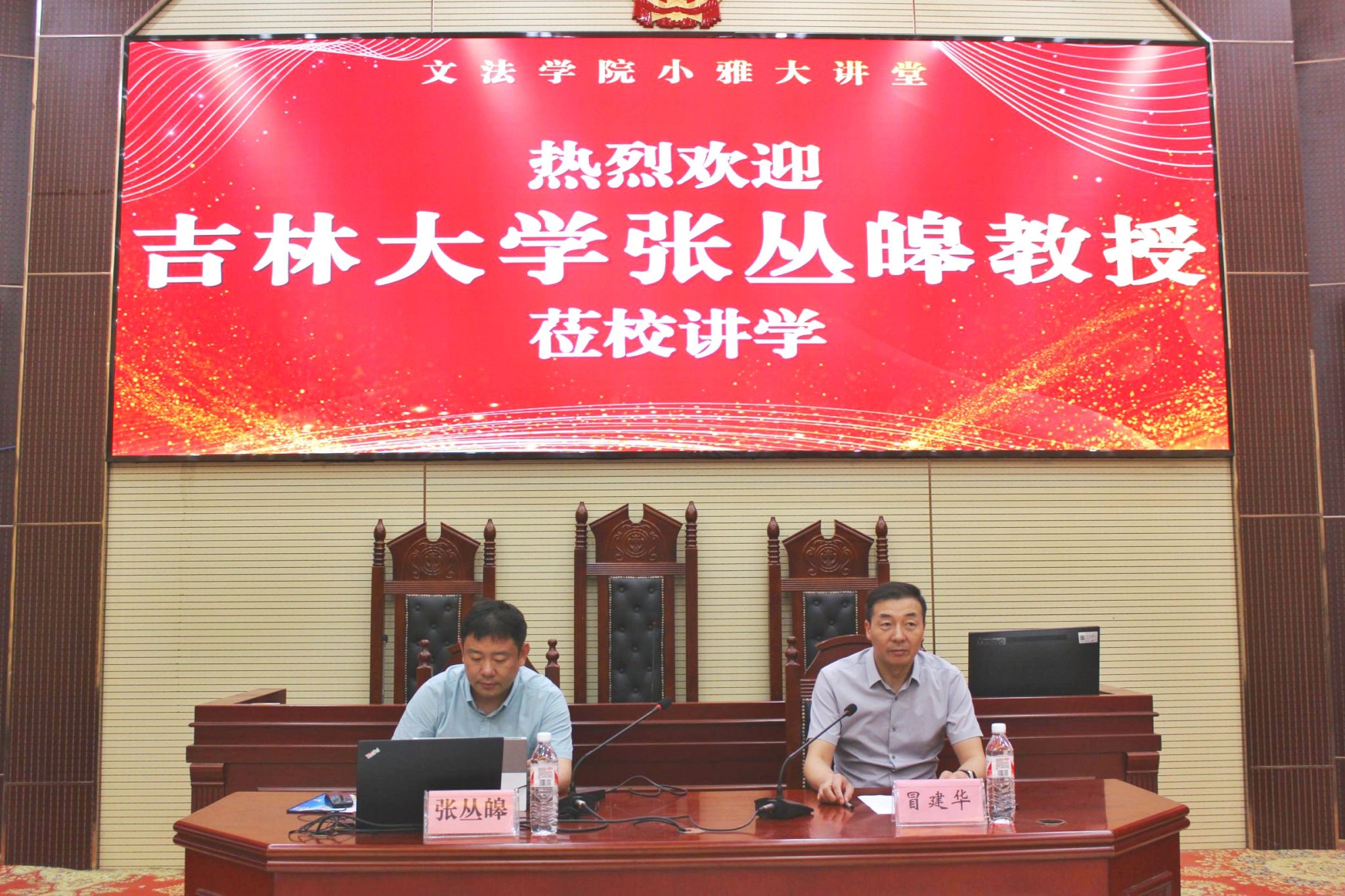 6月14日晚,文法学院“小雅大讲堂”第49期在北校区模拟法庭顺利举行,本次活动特邀吉林大学文学院院长、博士生导师张丛皞教授,作了题为“中国现代文艺大众化的理论实践与历史影响”的学术讲座。讲座由文法学院院长冒建华教授主持。