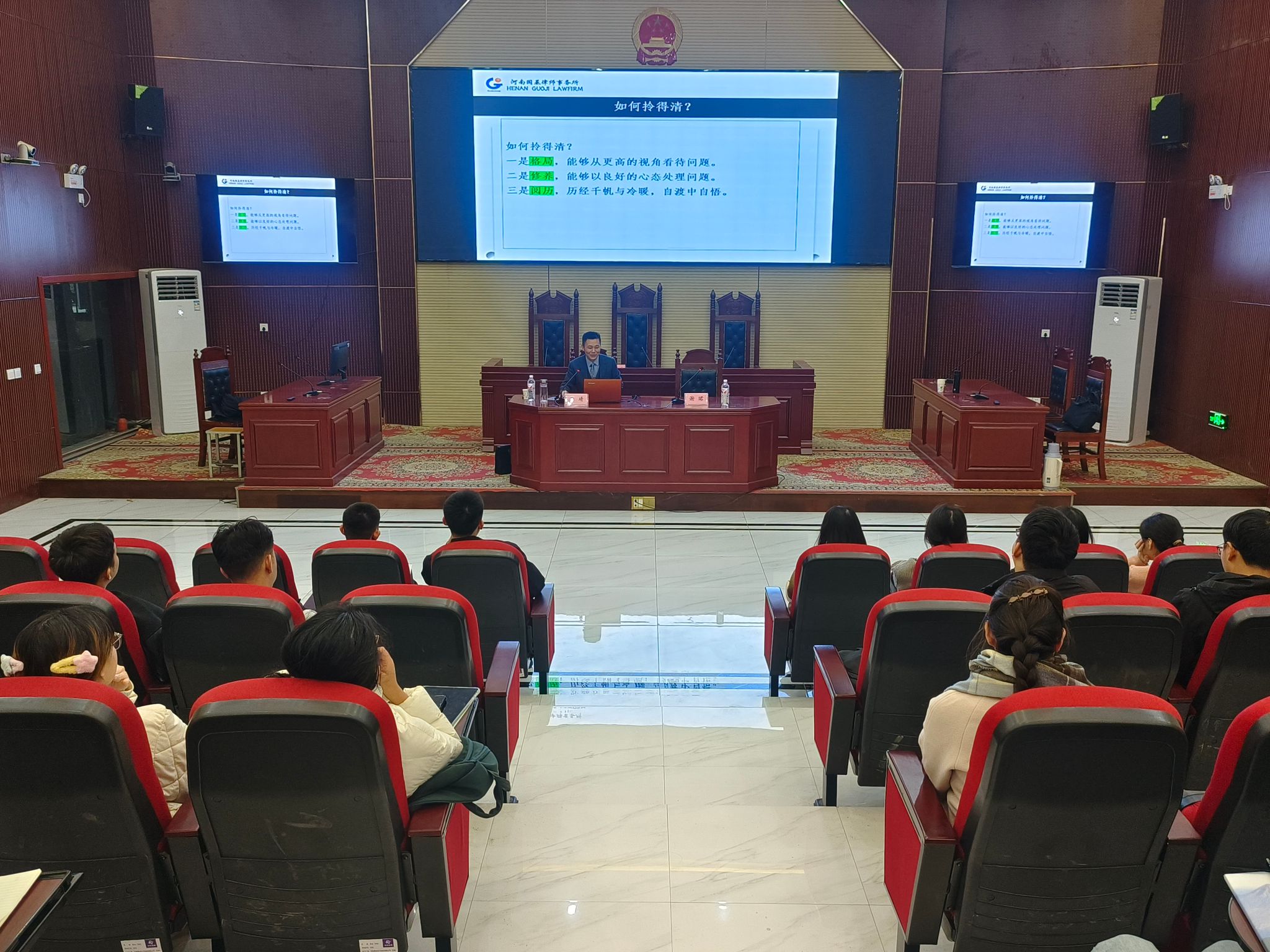 2024年11月23日上午,河南国基律师事务所主任童靖莅临我院为师生作了一场关于《法律人的职业素养——以刑事辩护律师为视角》的专题讲座,讲座由副院长谢珺主持,23级、24级法律硕士及部分本科生共计130余人参会。