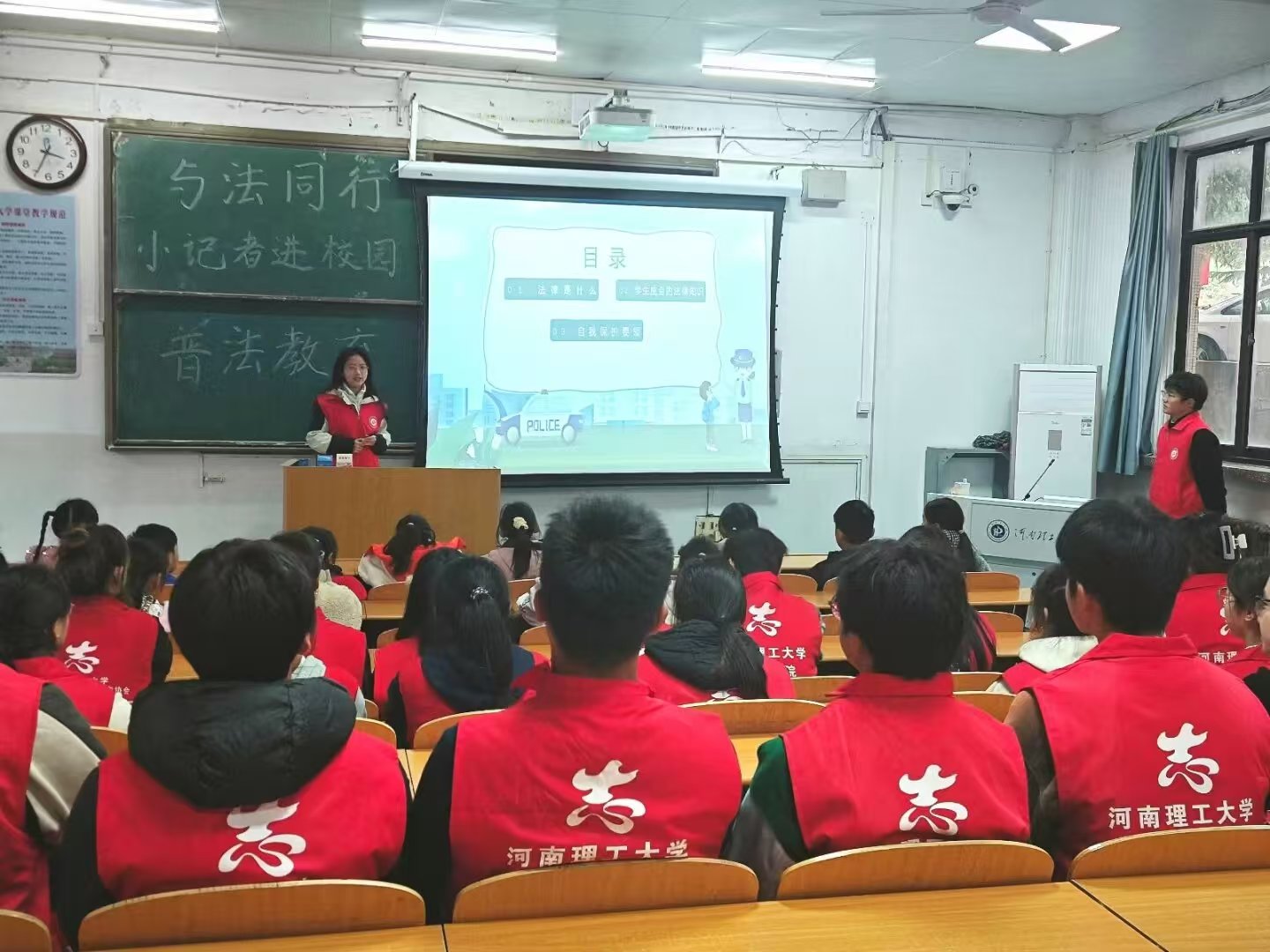 为了使小学生更深入地了解法律知识,用法律知识维护自己的权益,并且了解焦作煤矿工人大罢工的相关知识,培养爱国主义精神,11月16日下午,文法学院本科生第一党支部与本科生第二党支部共同开展了“与法同行·小记者进校园”活动。