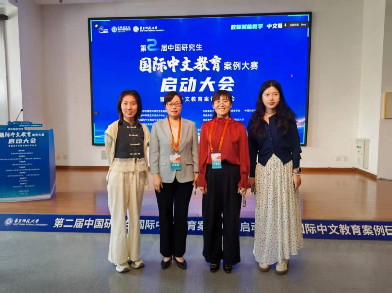 4 月 26 日,由中国学位与研究生教育协会主办、中国科协青少年科技中心主办,华东师范大学承办的第二届国际中文教育案例大赛启动大会在华东师范大学普陀校区隆重举行。众多高校受邀参加此次会议,共同见证这一赛事的开启。我院副院长曹爽、张海媚及两位研究生参与了此次会议。大会共分为启动大会、校长报告、案例研讨会三大环节。