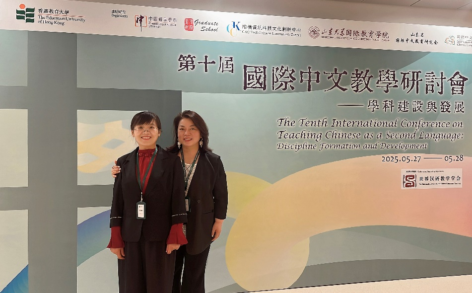 5月27-28日,受中国香港教育大学邀请,我院张海媚、姚军玲两位教授赴中国香港参加由香港教育大学中国语言学系、研究生院、纵横信息科技文化创新中心、山东省国际中文教育研究会、山东大学国际教育学院以及《国际中文教育学报》联合主办的第十届国际中文教学研讨会,与来自英国、美国、法国、韩国、新加坡、越南等国家和地区的专家学者共襄学术盛举,深入探讨国际中文教学领域的热点问题与发展趋势。