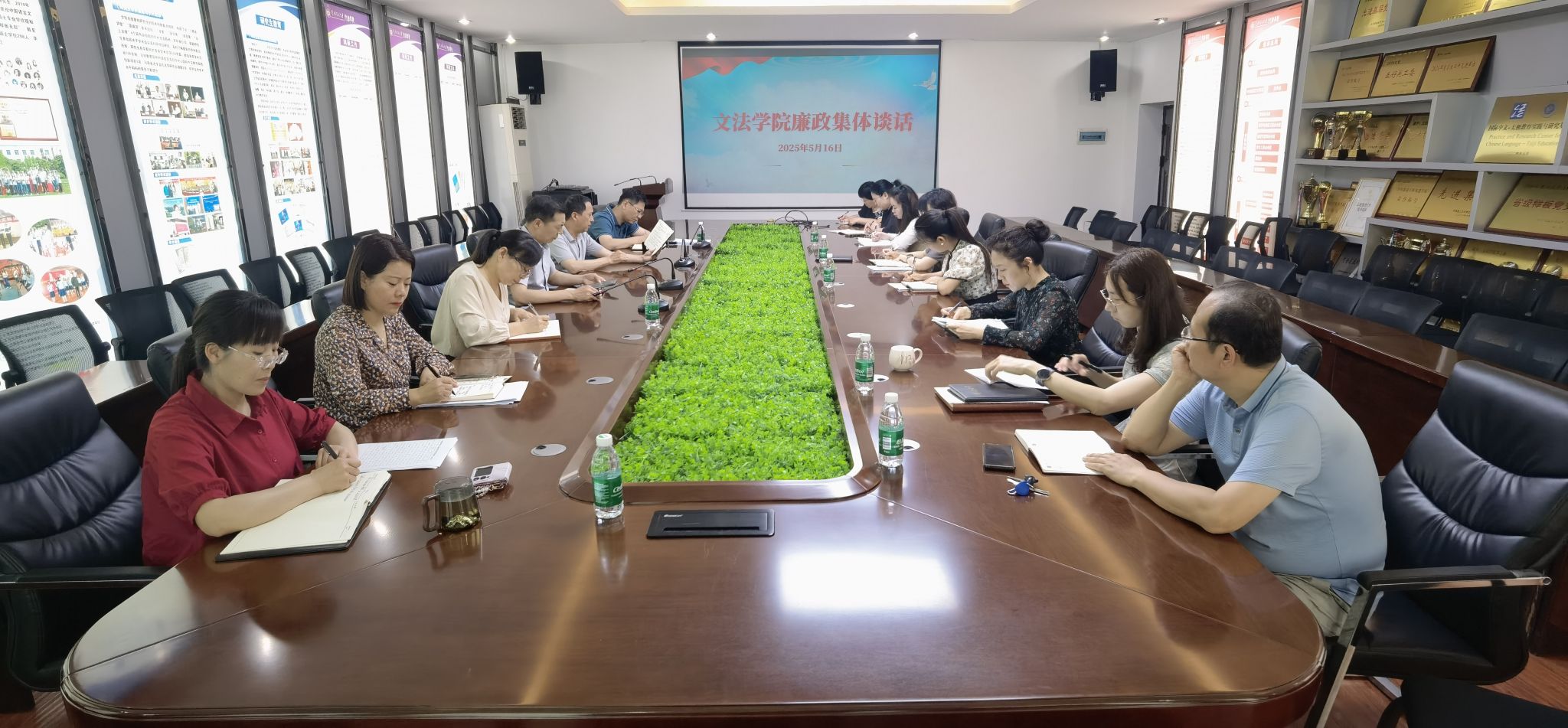根据深入贯彻中央八项规定精神学习教育和党风党纪教育月工作安排,5月16日,文法学院党委在121会议室召开廉政集体谈话会,对学院领导班子成员、全体科级干部、党支部书记开展廉政谈话。