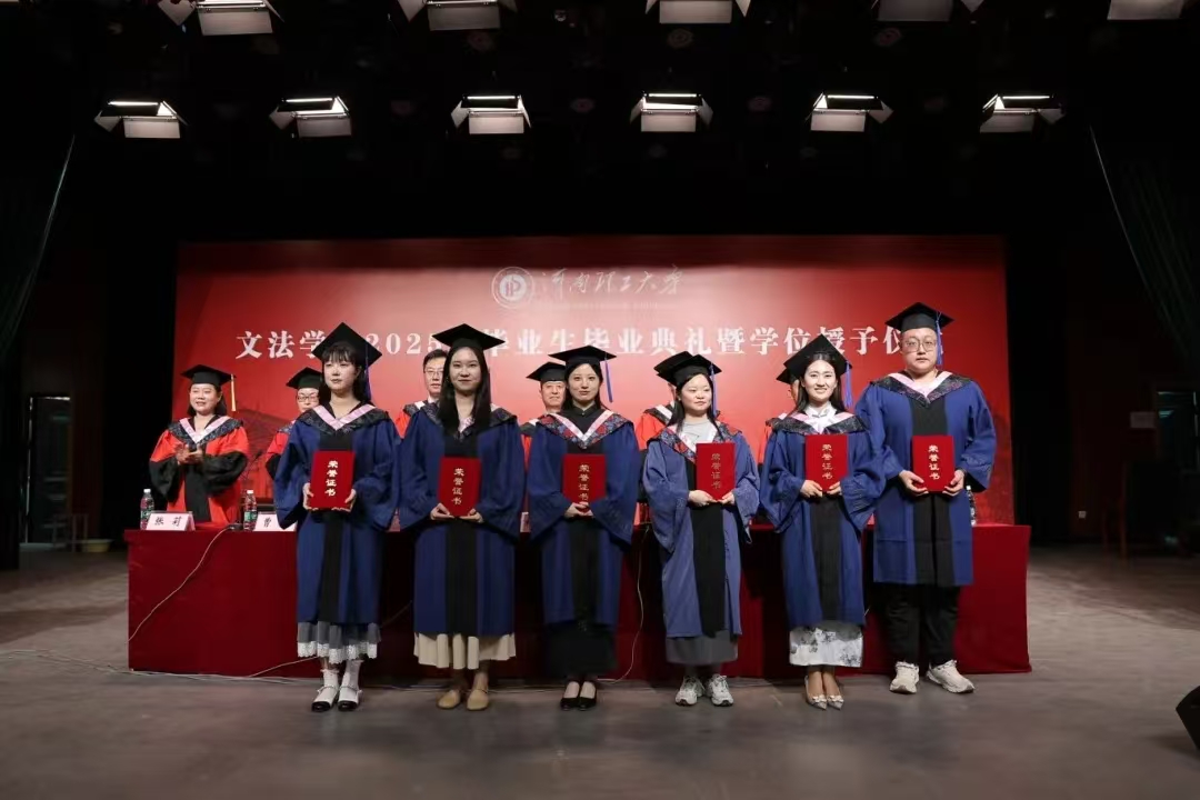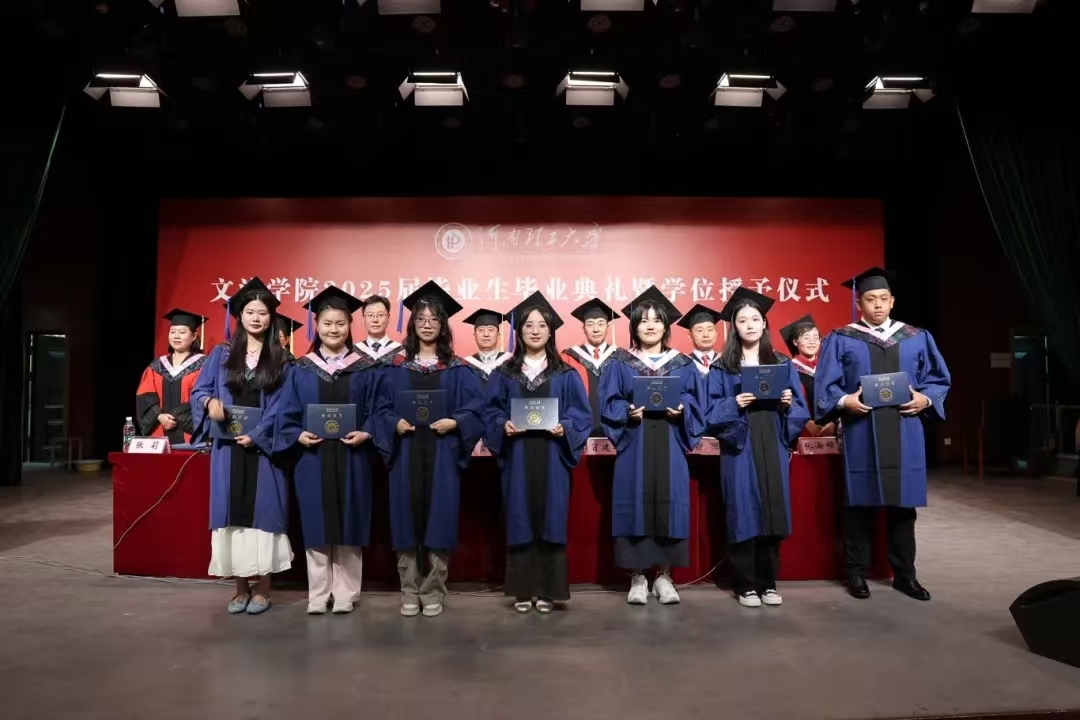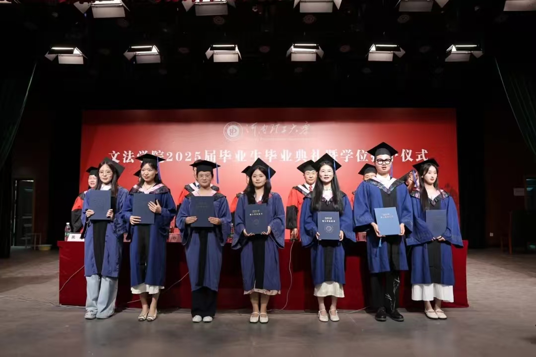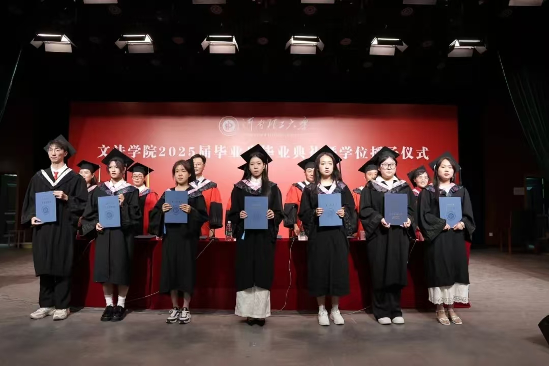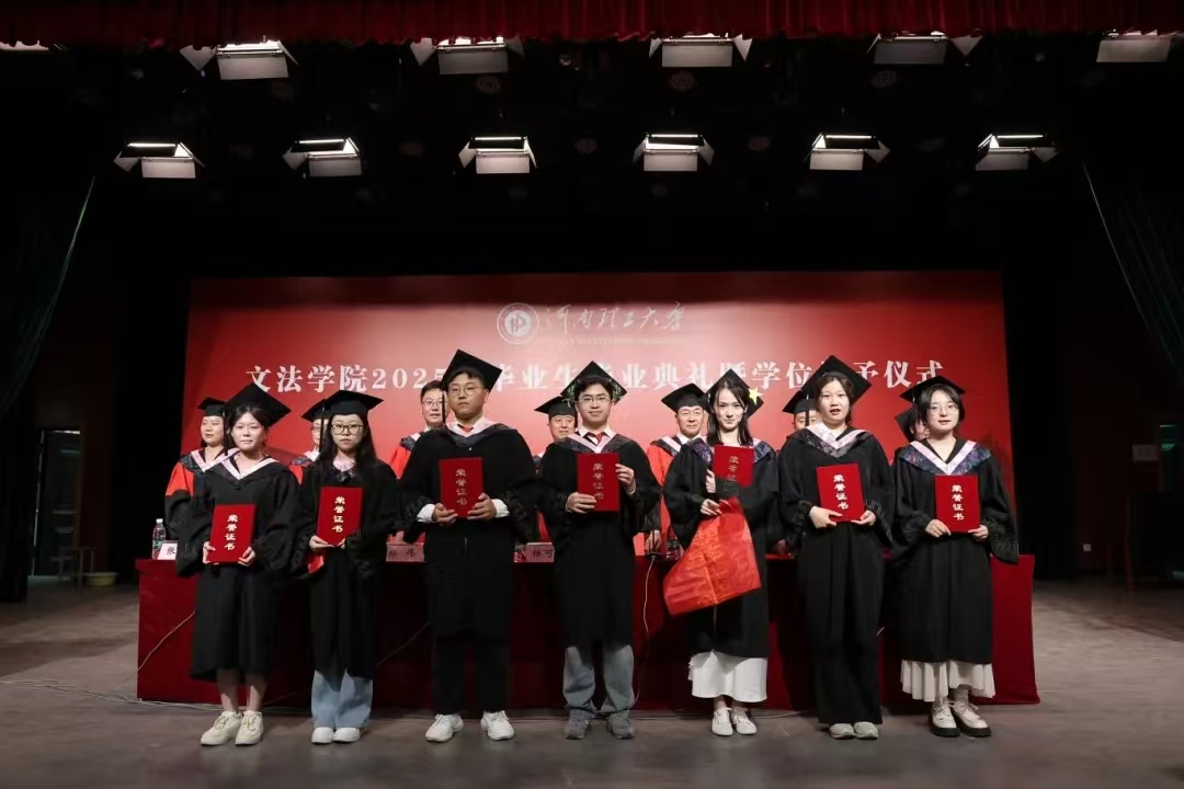 6月10日下午,文法学院2025届毕业生毕业典礼暨学位授予仪式在北校区小礼堂隆重举行。文法学院党委书记杨可臣,院长冒建华,党委副书记郑伟,副院长谢珺、曹爽、张海媚、张莉出席仪式。学院教师代表和全体2025届研究生毕业生、本科毕业生参加仪式。仪式由郑伟主持。