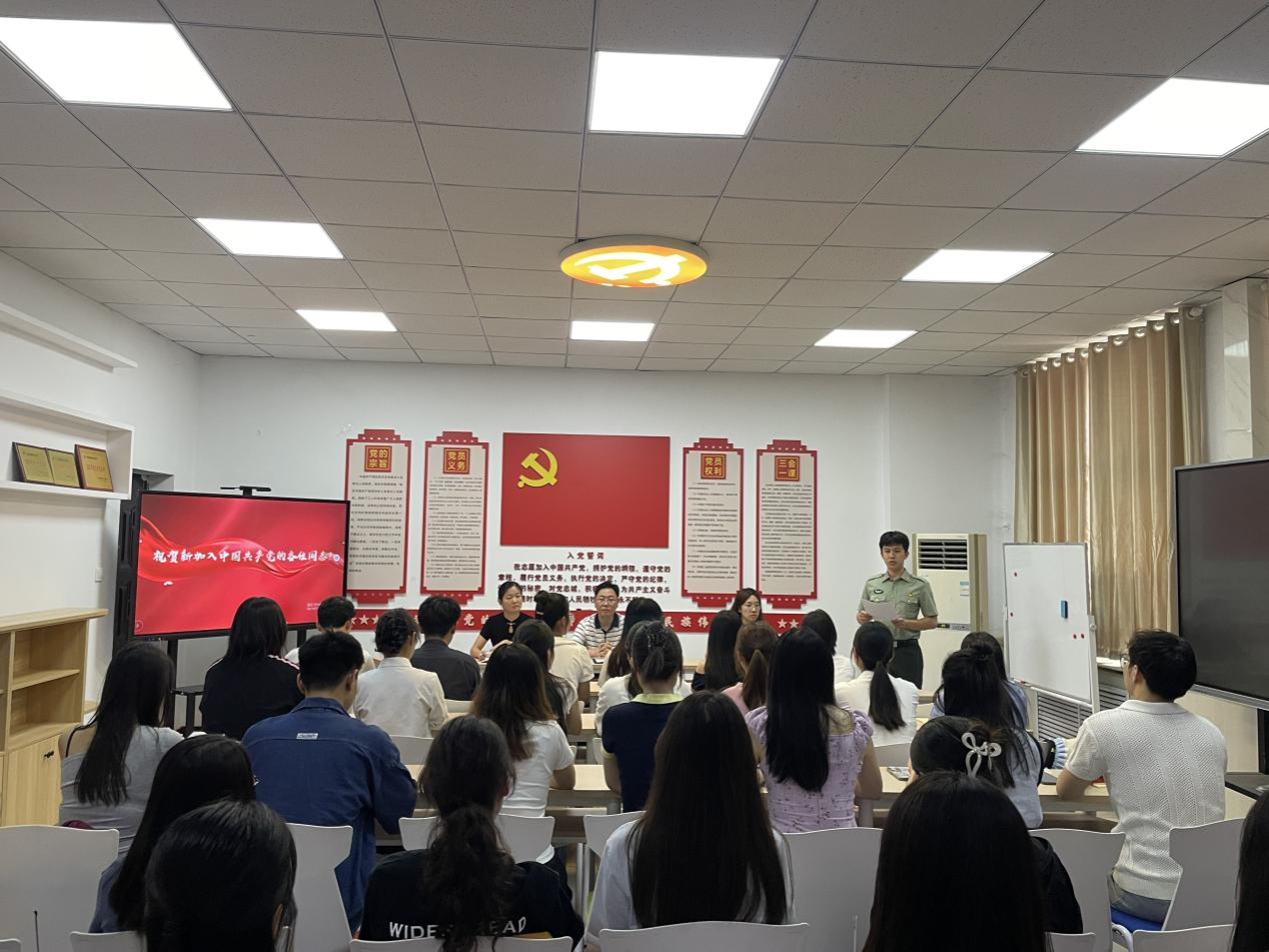 仪式开始前,学院党委向预备发展党员发放了《中国共产党章程》和《习近平文化思想学习纲要》。仪式结束后,全体党员共同观看了《党课开讲啦|入党誓词的演变》《这就是中国》教育片。