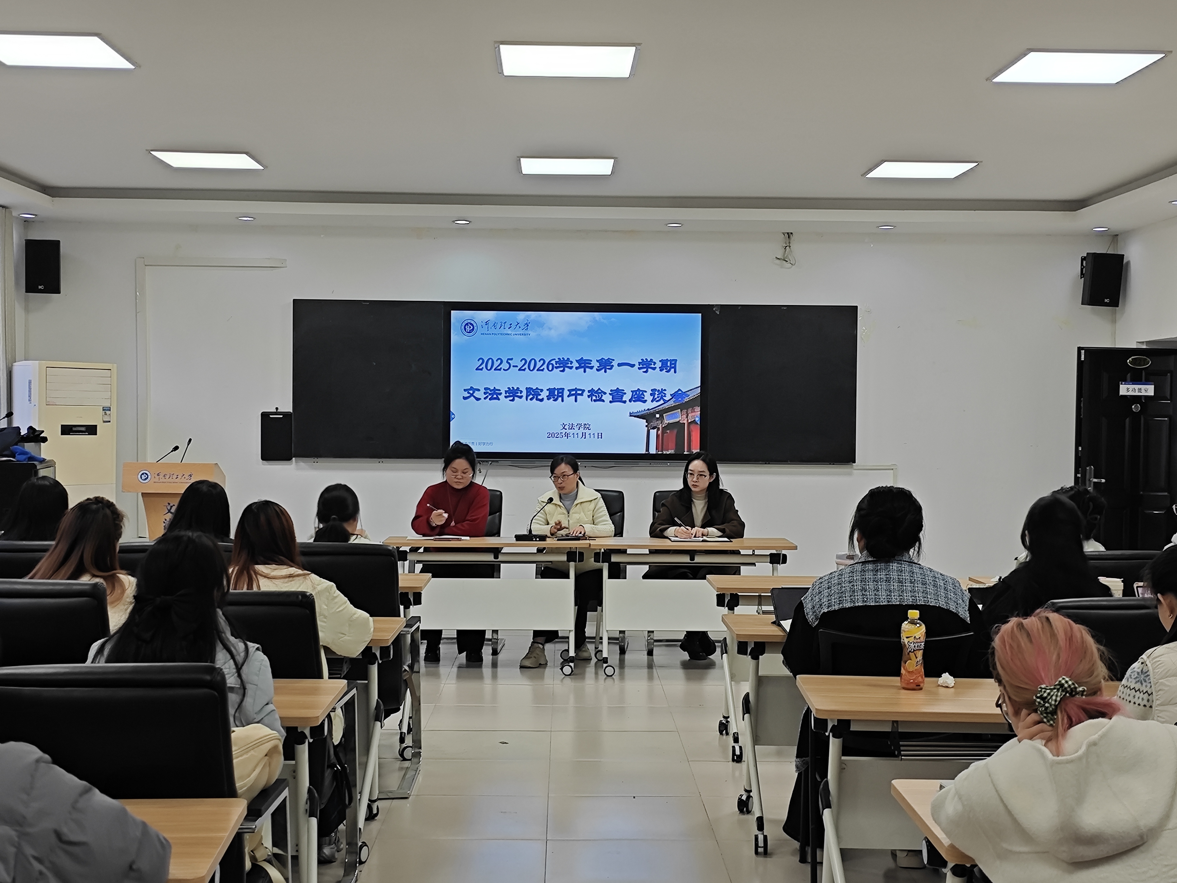 为全面了解研究生教育教学情况,进一步提升教育教学质量,11月11日下午,文法学院在学院楼221会议室召开了2025-2026学年第一学期期中教学检查研究生座谈会。文法学院副院长曹爽、研究生管理办公室主任刘坡、研究生教育中心主任刘晶以及全体在校研究生参会。