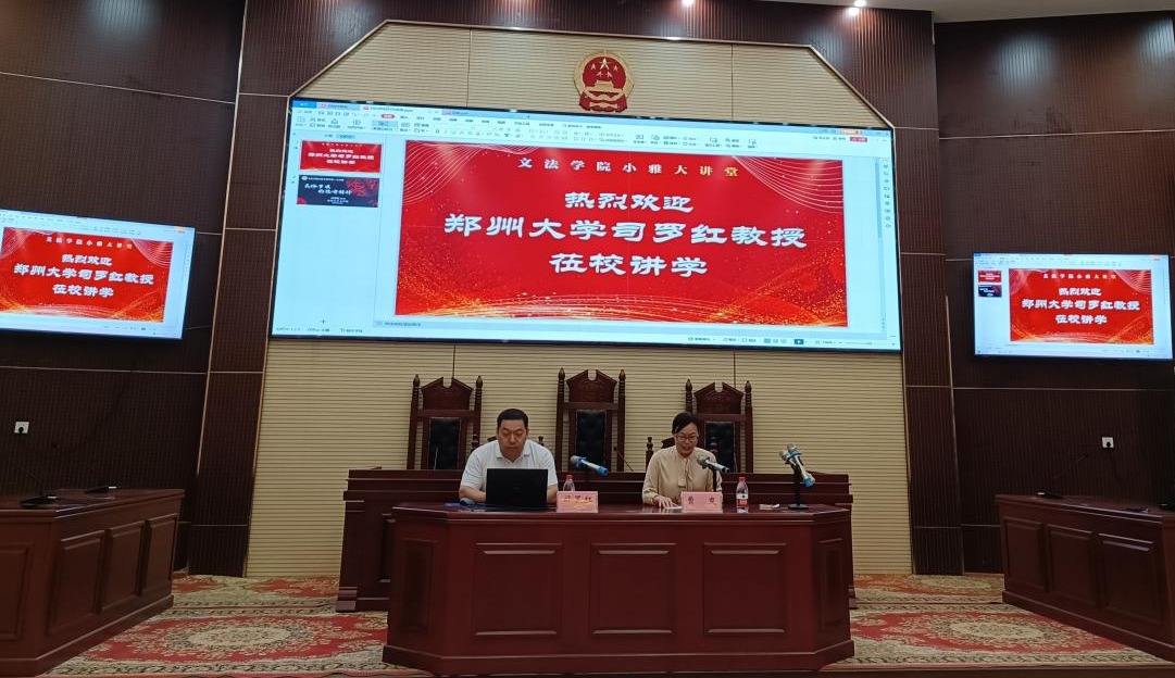 6月3日晚上,文法学院在北校区模拟法庭顺利举办了小雅大讲堂第33期讲座。郑州大学文学院副院长司罗红教授为我院师生做了题为“民俗事项的隐喻解释”的精彩讲座。讲座由文法学院副院长曹爽教授主持。