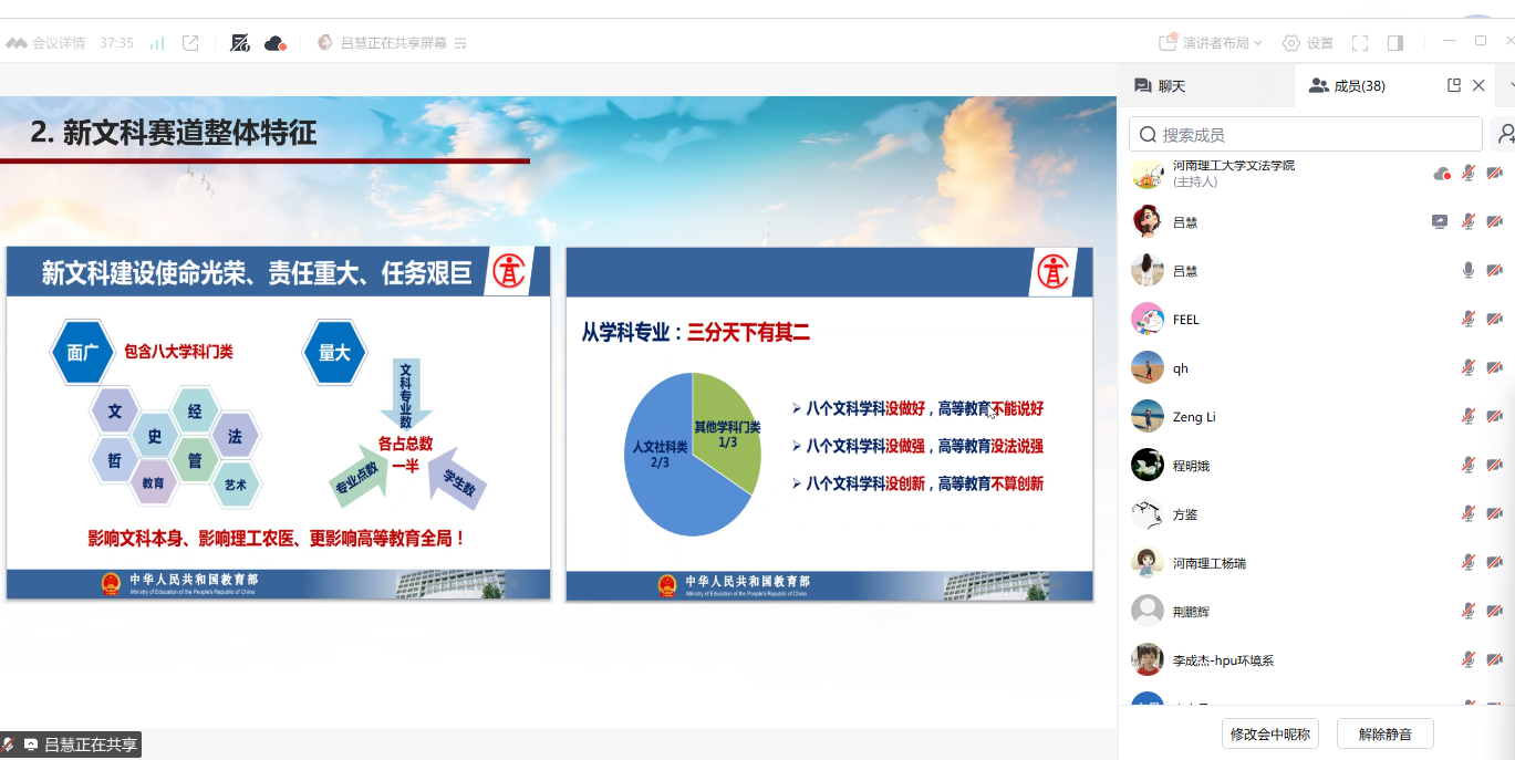 3月25日上午,我院在学院楼121会议室举办新文科教创赛线上辅导讲座。中国石油大学(北京)经济管理学院吕慧教授受邀作“新文科教创赛的‘道’与‘术’:从理念到落地的通关秘籍”线上专题讲座。讲座由文法学院副院长谢珺主持,全校参赛教师参加。