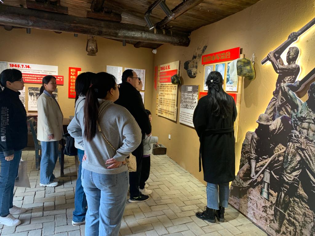 在讲解员的带领下,支部党员们先后参观了新华公司旧址,中共沁博县第三区委、第三区公所旧址,太行区第四专区旧址和焦作市公安局旧址。各个展厅中可敬可爱的人物形象和丰富多彩的文物陈列,真实再现了刘毅等革命先烈的英勇斗争故事和山区群众积极参军参战的革命奉献精神,生动诠释了焦作煤矿工人“特别能战斗”的精神品格。在这些伟大革命精神的感召下,老师们在红墙前重温了入党誓词,并唱响《没有共产党就没有新中国》,以铮铮誓言和嘹亮歌声来表达对革命先烈、革命群众的无限敬仰。