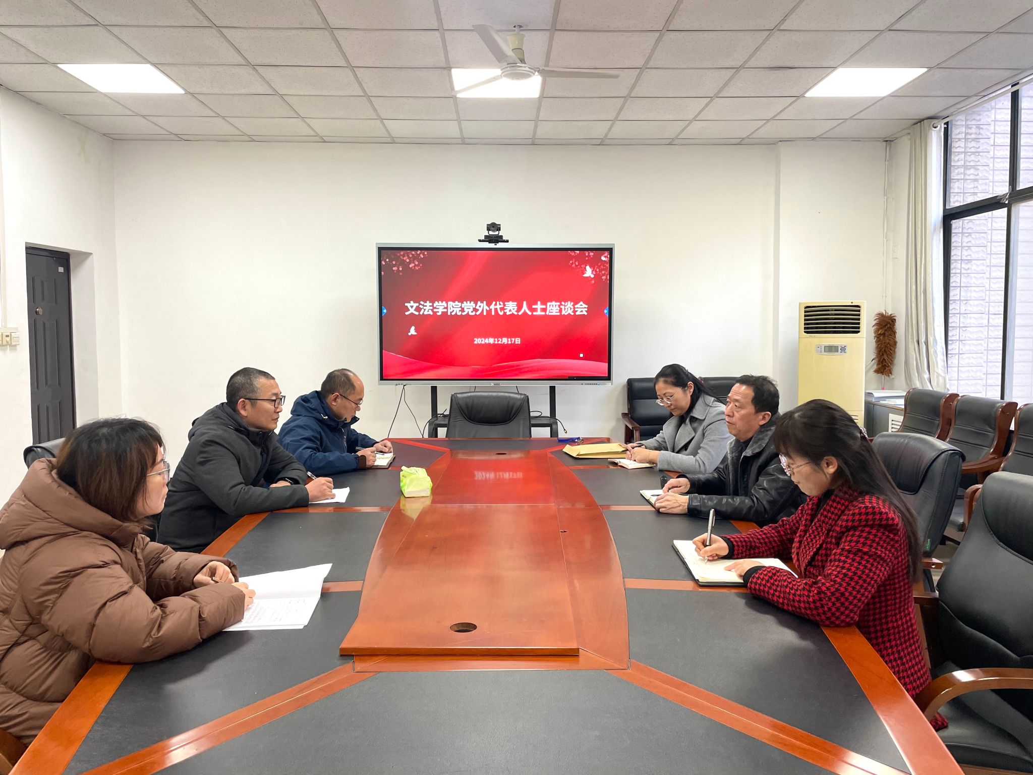 12月17日下午,文法学院在218会议室召开2024年党外代表人士座谈会。学院党委书记杨可臣,学术副院长张海媚及党外人士代表参加了此次会议。