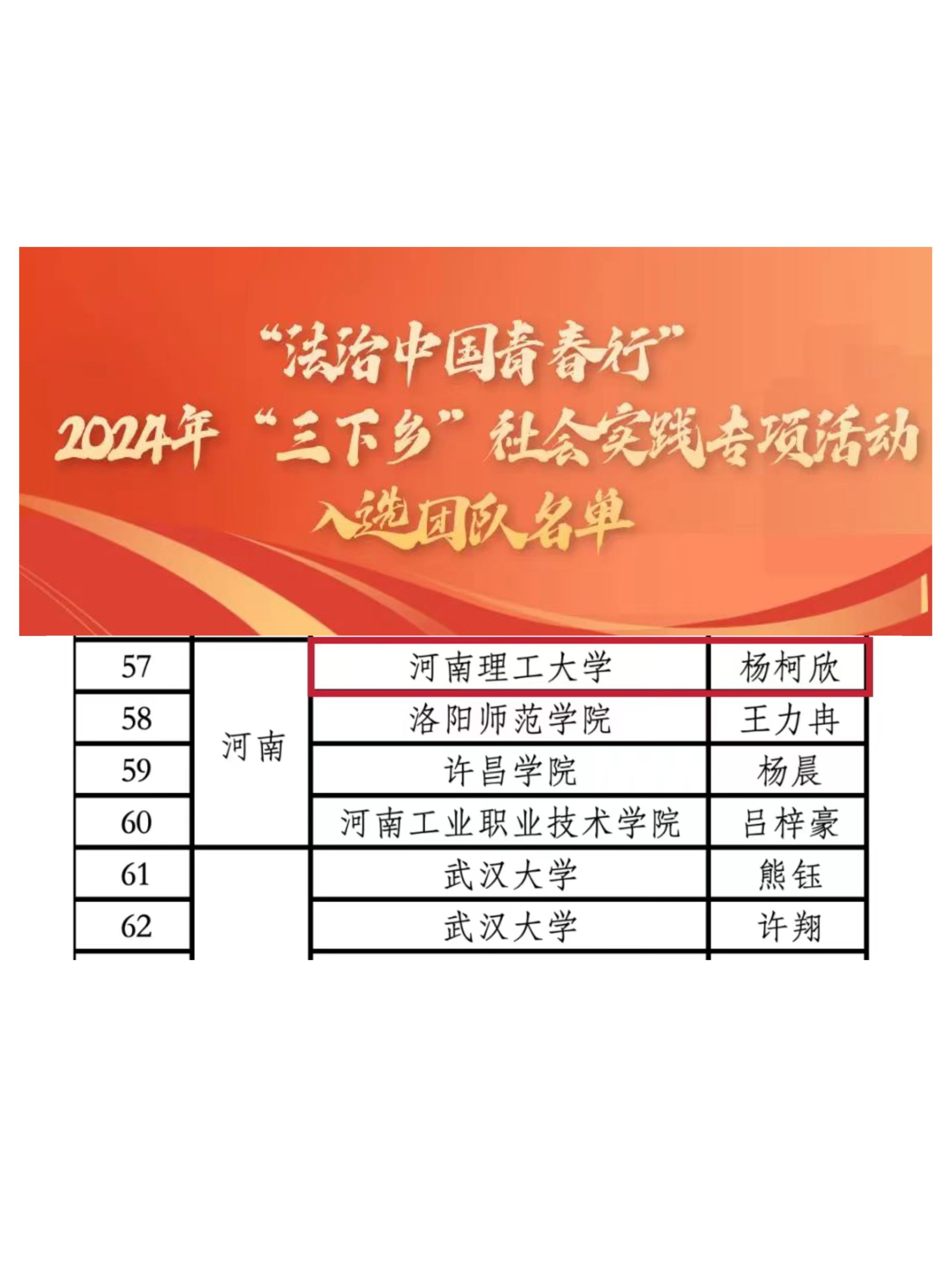 为贯彻落实习近平法治思想和习近平总书记关于青年工作的重要思想,动员广大高校学生投身基层法治实践,共青团中央维护青少年权益部、司法部普法与依法治理局、公安禁毒局联合指导开展2024年“法治中国青春行”社会实践专项活动,全国共2204支团队报名参加,经过层层筛选,认真评审,共遴选出108支实践团队,河南省共有四支团队入选。